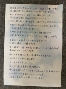勉強会で杉中先生に出会いました。真面目で何事も一生懸命取り組む姿を見て、施術していただきたいと思いました。