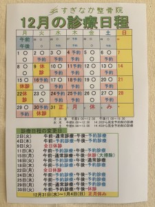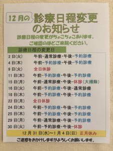 年末のため、午前を通常診療で、午後は予約診療になります。